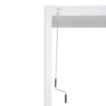 Ce modèle se distingue par son toit composé de 38 lattes orientables via une manivelle. Ce système bioclimatique permet de gérer facilement l’ensoleillement et la ventilation naturelle : ouvrez les lames pour laisser passer l’air ou fermez-les pour vous protéger du soleil ou d’une averse légère. La structure est conçue en aluminium recyclé traité époxy pour une haute résistance aux UV et à la rouille.
