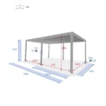 Structure Grande Dimension Couvre une surface de 21,6 m². Structure autoportée robuste en aluminium (Poids total 302 kg) nécessitant un ancrage solide au sol.