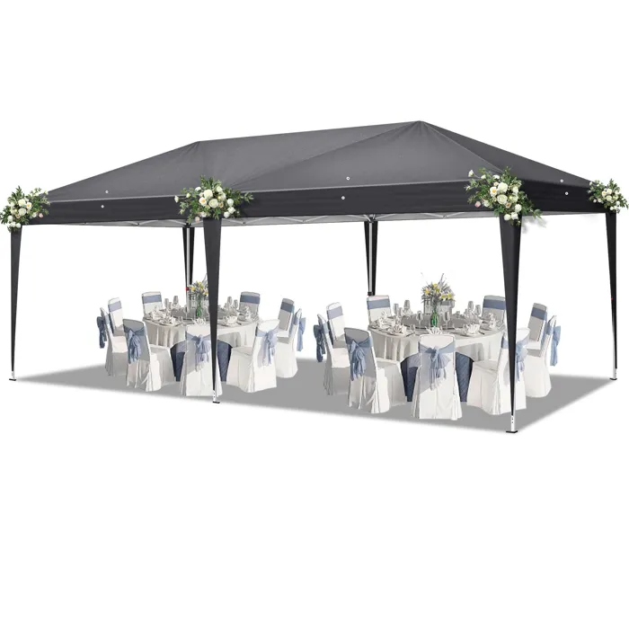 La tonnelle pliante Alightup de 3×6 mètres offre une solution d’ombrage spacieuse et rapide à installer. Conçue pour les événements en plein air comme pour les usages commerciaux, elle permet de couvrir une surface de 18m², suffisante pour abriter du mobilier de jardin, un stand de marché ou une zone de réception.